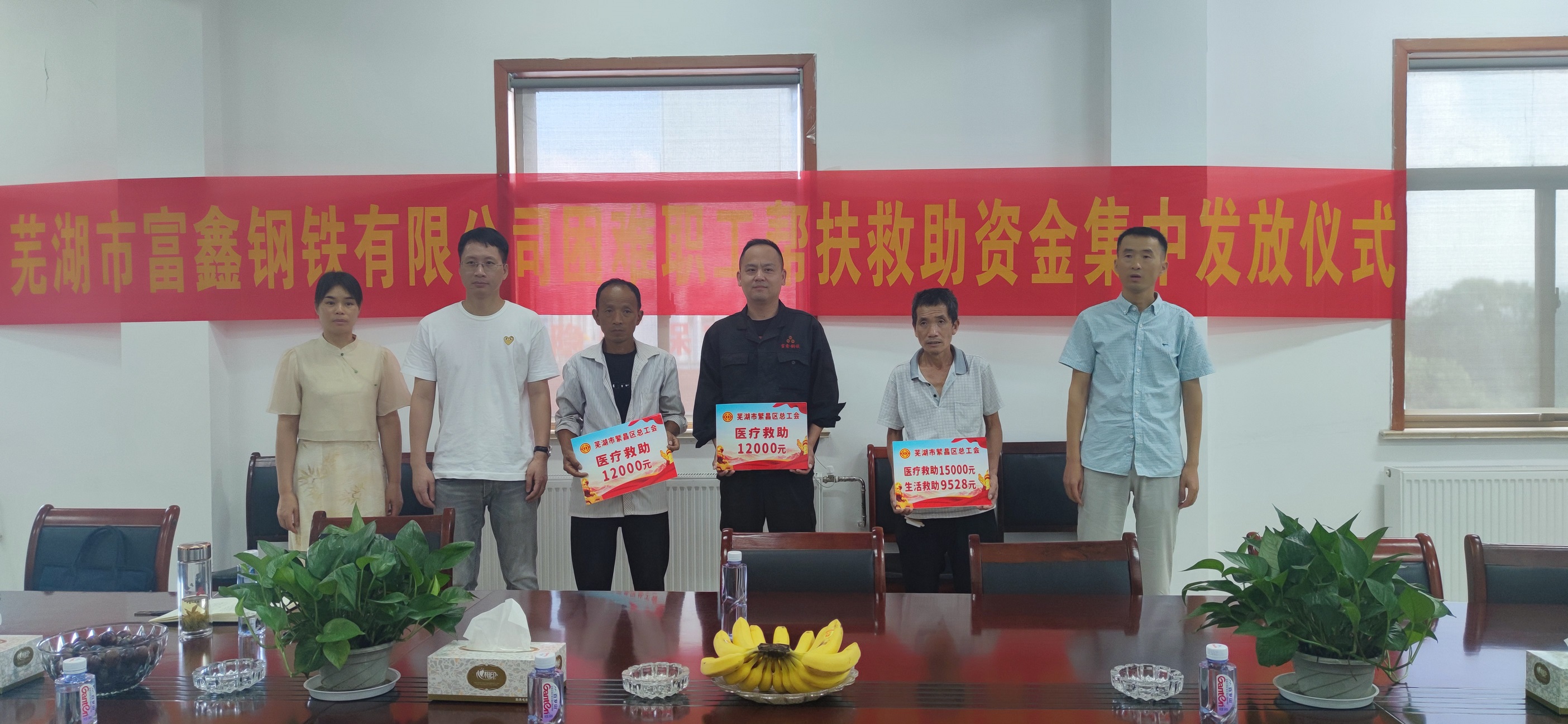 8月4日上午,繁昌區總工會一行在新港鎮總工會相關負責人的陪同下到蕪湖市富鑫鋼鐵有限公司舉行困難職工幫扶救助金發放...